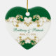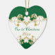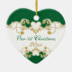 Este coração personalizado deu forma a enfeites de natal cerâmicos na verde floresta, branco, e os rolos do ouro têm falso gravaram o fundo verde da cor damasco, com os rolos florais ornamentado de um brilho do ouro do falso (IMPRESSO) com os trevos decorativos do ouro nele que fósforo o irlandês, o céltico, ou o convite do casamento do dia de St Patrick mostrado abaixo. Faria um ornamento collectible bonito para os newlyweds, ou para qualquer um da herança irlandesa. O texto é toda customizável. O *** NOTA POR FAVOR que se você muda a pia batismal ou o tamanho da pia batismal, ele pode alterar-se como seu ornamento imprime. Imprimirá a maneira que você a vê em seu monitor, assim que se você tem edições do alinhamento, ou problemas da cola, contacta-me por favor para a ajuda. Eu não verei seu ornamento uma vez que você o pede, e Zazzle não editará qualquer coisa (erros tipográficos, alinhamento, etc.). Se você exige o auxílio ou gostaria de quaisquer outros artigos de harmonização, para enviar por correio electrónico por favor seu pedido a niteowlstudio@gmail.com.