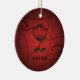 Uma bela rosa vermelha sobre um fundo vermelho escuro neste ornamento para personalizar.