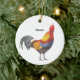 A color pencil drawing of a colorful Rooster adorns this customizable ornament! Change the text as you wish!