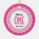 Ornamento De Cerâmica Rosa da lembrança do primeiro aniversario do bebê