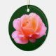Um ornamento com uma foto de uma rosa rosa atraente