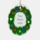 Um bonito ornamento fotográfico de Natal com a minha design de uma coroa de Natal decorada com corações vermelhos, roxos, brancos, azuis, verdes e brancos.