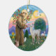 O santo Francis, o santo paternalista dos animais e do ambiente, é mostrado aqui com um doce lhama de bebê. Um coelho, cordeiro e pomba da paz também contribuem para esta encantadora cena.
