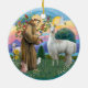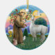 O santo Francis, o santo paternalista dos animais e do ambiente, é mostrado aqui nesta linda cena com um lama, junto com um cordeiro, coelho e pomba da paz.
