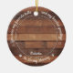 Honre o seu melhor amigo com um ornamento personalizado de memorial de fotos. Esta única manutenção do ornamento memorial de animais de estimação é o presente perfeito para você, família ou amigos para prestar tributo ao seu amado. Este ornamento memorial de cães apresenta as suas fotografias, impressões de pata e Citação "Tu foste o meu olá favorito e o meu adeus mais difícil ~ In Loving Memory". Personalize com fotos favoritas de cães de estimação ou gatos e nome. O pedido é de dois lados, você pode fazer duas fotos favoritas, uma em cada lado. Personalize o nome na frente e as datas na parte de trás. Perfeito para um Ornamento Memorial de Natal. COPYRIGHT © 2020 Judy Burrows, Black Dog Art - Todos Os Direitos Reservados. Rustic Favorite Alô Mais Duro Adeus Pet Memorial Cerâmica Ornament
