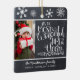 Belo ornamento de feriado baseado em tipografia. "É a época mais maravilhosa do ano" aparece em tipografia branca, escrita à mão, sobre um fundo do quadro de cinza de carvão acentuado com flocos de neve brancos com fotos da família.