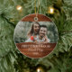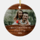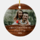 Celebre seu primeiro Natal como um casal casado com este adorável ornamento rústico! Apresentando um charmoso fundo de efeito de madeira, esta design permite que você carregue sua foto favorita de casamento e a personalize com seus nomes e o ano. O texto "Primeiro Natal como Sr. & Sra." é exibido com elegância, fazer que seja uma perfeita manutenção para recém-casados