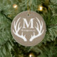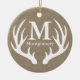 Ornamento De Cerâmica Rustic White Deer Antlers Faux Burlap Family Name