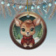 Rustic Xmas deer, Christmas Wildlife Doe, Fawn ornament featuring a round, brown wooden frame. Inside the hanging ceramic decoration, a scene unfolds with a cute baby animal cartoon character graphic, wearing a sweater and scarf. The background includes soft, wintry elements like trees and distant winter snow landscape, completing the holiday season charm of this delightful unique doe design decor. Same Image is on the front and back, ensuring that no matter how the ornament turns, it always looks festive and complete.