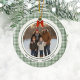 Ornamento De Cerâmica Sage Green Gingham Plaid Circle Photo Christmas