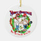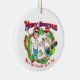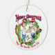 Salty Christmas é uma ilustração divertida de um casal antigo de pescadores de tambor vermelho em suas linhas de pé. Ambos em frente a uma palma da coroa de Natal com um cabeçalho Feliz de Natal e texto inferior, que o peixe esteja com você.