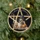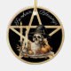Este design de Samhain apresenta a saudação "Bênçãos Samhain", assim como um pentáculo dourado, e belo gráfico de velas pretas e brancas, abóboras e folhas de outono. Na parte de trás do ornamento, eu apresentei o ano (como exemplo) no centro de um gráfico de burst de estrela de cor dourada. Todo o texto e as fontes podem ser personalizados, assim como as cores de fundo. As imagens podem ser ajustadas ou substituídas.