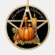 Este design de Samhain apresenta a saudação "Bênçãos Samhain", assim como um pentáculo dourado, e belo gráfico de velas pretas e brancas, abóboras e folhas de outono. Na parte de trás do ornamento, eu apresentei o ano (como exemplo) no centro de um gráfico de burst de estrela de cor dourada. Todo o texto e as fontes podem ser personalizados, assim como as cores de fundo. As imagens podem ser ajustadas ou substituídas.