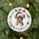Aqui está um adorável ornamento personalizado para qualquer um que ama um Cachorro-Boxer. A frente tem um Boxer branco e castanho-d-água vestindo um chapéu de Papai Noel. A imagem é enquadrada dentro de uma coroa circular colorida composta por várias imagens de Férias, incluindo um boneco de neve, sinos, cana doce, estocagem, Holly e muito mais! A parte de trás do ornamento tem a mesma imagem de coroa com seu texto personalizado em verde e vermelho.