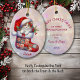 Aqui está um lindo ornamento de manutenção para aquela neta muito especial. A frente tem uma imagem de um adorável gatinho laranja e branco a espreitar de uma estocagem de Feriado de retalhos. O gatinho veste um chapéu de Papai Noel superdimensionado, e pererguimentos holly o cercam. A imagem é colocada sobre um fundo rosa claro e lavanda do livro. Há um campo de texto personalizado para o nome da criança na parte inferior. A parte de trás do ornamento tem o mesmo plano de fundo, com campos de texto para personalização. Faça-o dizer o que quiser!