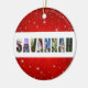 Mostre seu amor pela cidade de Savannah, Georgia nesta temporada de festas com este Enfeites de natal festivo! A colagem apresenta fotos coloridas de viagem da cidade centro e do horizonte, incluindo a fonte no Forysth Park e o farol da ilha Tybee.