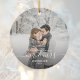 Ornamento De Cerâmica Script Branco de Fotografia Personalizada do Natal
