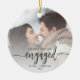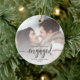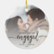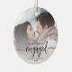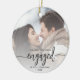 Comemore o seu noivado com este belo ornamento moderno do keepsasaame. O texto da cinza de carvão diz "Nosso primeiro Natal engajado", com a palavra "engajado" em um roteiro elegante de caligrafia com embates decorativos antes e depois. Substitua a imagem de exemplo por sua foto favorita e adicione seus nomes e o ano. Um filtro de gradiente branco ajuda a fazer o pop de texto.