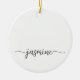 Um Simples Monograma Simples, Simples E Limpo, De Nome, Escreve O Ornamento Personalizado De Cerâmica. Este design com seu primeiro nome em um script preto tipografia de assinatura (ou caligrafia) com estilo simples, escrito à mão bonito, em fundo branco. Estes são fáceis de personalizar. Excelente presente de lar feminino, também para aniversário, dia da mãe, doce festa de aniversário 16, casamento, chá de panela, chá de fraldas, para festa de formatura e é para a garota que ama coisas na moda únicas.