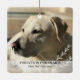 Um ornamento versátil de dois lados para mostrar duas fotos do seu amado membro da família peluda. Cada lado inclui um espaço reservado para fotos, adornada com elegantes folhas de louros brancas, e uma citação sentimental que pode ser personalizada. O lado frontal apresenta a citação padrão: "Se o amor sozinho pudesse mantê-lo aqui...