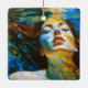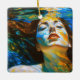 "Selene" - Mulheres Na Água. Nesta cena da água serena e colorida de mulheres de arte fina, uma bela mulher com cabelos longos e vermelhos flutua num mar azul girando. A luz do sol anuncia sua face pacífica sob a superfície da água. Com os olhos fechados e a face erguida, ela absorve a luz, incorporando uma figura forte, resiliente e inspiradora nesta imagem multicolorida.