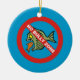 Sinal proibido por causa de peixe zangado intimidando um pequeno.