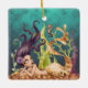 Ornamento De Cerâmica Sereia personalizada e cavalo marinho sob o mar