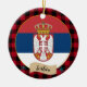 Ornamentos: Ornamento decorativo russo da Sérvia com bandeira sérvia cercada por padrão de xadrez de búfalos vermelho e preto - adoro o meu país, decoração de Natal, patriotas nacionais/fãs desportivos.