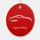 Ornamento De Cerâmica silhueta 350Z branca com fundo vermelho