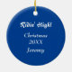 O seu snowboarder vai adorar este Enfeites de natal! Apresenta uma imagem prateada de um snowboarder em frente a um spray de flocos de neve prateados. A imagem é colocada sobre um fundo azul profundo. A parte de trás do ornamento é a mesma azul, com três campos de texto para personalização.