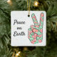 Espalhe alguma paz com este design que apresenta um fazer de mão no sinal de paz enquanto encheu com símbolos de paz num esquema de cores de Natal verde e branco. Um fundo de flocos de neve pastel fornece um trajeto do inverno, enquanto a mensagem de paz também é expressa por texto que lê "Paz na Terra" em um roteiro preto.