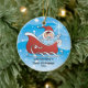 O Primeiro Ornamento de Natal do bebê apresenta o bebê mais bonito em um trenó vermelho em um fundo cheio de neve. Personalize com sua informação e data do bebê e você está pronto para ir! Um maravilhoso presente de guardiã para o natal de 1rua do seu bebê.