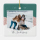 Um Enfeites de natal moderno e aconchegante, ao estilo hygge, com uma foto favorita em um fundo de neve com blocos coloridos, na natureza suave, inspirou cores de férias. Personalize com seus nomes ou nome de família embaixo, e o ano no topo. Adicione uma segunda foto ao verso.