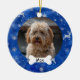 Personalize este design de ornamento festivo com uma foto do seu cachorro com o primeiro nome na placa do monograma do cão. Um presente de excelente para amantes de cachorros, para celebrar o primeiro Natal de um filhote ou para estimar a memória de um querido cachorro da família.