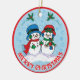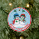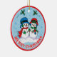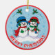 Personalize este Enfeites de natal Adorável De "Um Tipo"! Sr. & Sra. Frosty, o boneco de neve está pegando um filme de Natal mágico através de uma "Terra das Neves do Inverno"! Design de Belas Artes Original pelo Artista Kerry Miller.