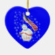 Um bonitinho bonitinho e uma bandeira americana em uma onda de flocos de neve em um feriado de Natal nos EUA mantém o ornamento cardíaco. Trará um sorriso ao coração e lembranças amáveis para os nossos homens e mulheres do serviço militar. Um presente perfeito para mostrar o quanto nos importamos e honramos o serviço deles. Personalize adicionando texto na parte traseira no modelo fornecido. Você também pode desfrutar dos cartões de Natal e presentes com este design correspondente disponível na minha loja. Arte original e design do Anura Design Studio.