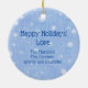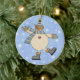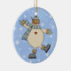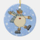 Um boneco de neve cego está dançando nos flocos de neve. Fundo azul pálido com flocos de neve brancos. O verso do ornamento também tem o fundo do floco de neve. Pode ser personalizado com o ano ou uma mensagem especial nas costas!