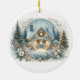 Ornamento De Cerâmica Snowy Cottage Glow Scene