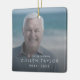 Este chico em adorável recordação de pai de capa de fotos da cerâmica é a decoração perfeita e moderna das árvores de Natal. O simples design apresenta uma tipografia branca minimalista clássica com um toque rústico. Este ornamento de manutenção diz "na memória amorosa". Personalize seu ornamento de dois lados com uma foto do seu avô, pai, irmão, tio, sobrinho ou amigo, o nome e as datas de seu amado.