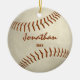 Este ornamento temático comemorativo do beisebol / softball para meninos ou meninas apresenta um beisebol / softball com pontos avermelhados nos quais você pode personalizar o nome e o ano do jogador - por katz_d_zynes