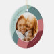Adicione uma foto favorita a este ornamento quadrado para uma adição festiva e memorável à sua árvore! O Design redondo apresenta uma foto favorita em cada lado, sobre um fundo de listras de ondas orgânicas em tons de verde-claro-de-borra e vermelho-de-groselha. Personalize com o ano e seu nome familiar.
