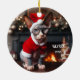 Ornamento De Cerâmica Sphynx Cat no Natal do Santa Hat