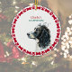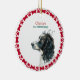 Este ornamento cerâmico apresenta uma cor d'água Springer Spaniel moldada por uma pintura vermelha e uma borda óssea. Adicione o nome do seu cão e o ano em uma fonte de script para celebrar o seu primeiro Natal ou crie uma saudação alegre para os feriados.