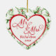 Celebre seu dia especial com este belo Sr. e Sra. Ornament em forma de coração para recém-casados! Personalize facilmente com sua própria foto na frente e seu sobrenome e ano de casamento na parte de trás, em um fundo de azevinho doce, por uma guarita que você pode tesourar por anos.