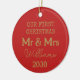 Ornamento De Cerâmica Sr. e Sra. Primeiro Natal, Foto Dourada E Vermelha