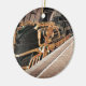 Uma locomotiva dinâmica do trem do steampunk em uma parada subterrânea do estação de caminhos-de-ferro.