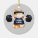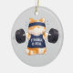 The cat is struggling and giving its absolute all to lift the heavy weight; sweat is pouring down, but the struggle finally pays off