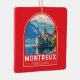 Design de viagem de vetor retrô de Montreux. O MONux é uma cidade tradicional no lago de Genebra. Enfiado entre colinas íngremes e o lado do lago.