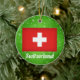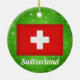 Mostre a todos o seu amor pelo país da Suiça com este Enfeites de natal único com a bandeira suíça em um fundo verde em floco de neve!