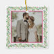 Este Enfeites de natal tem um design branco com um quadro de feriado verde que rodeia sua foto.